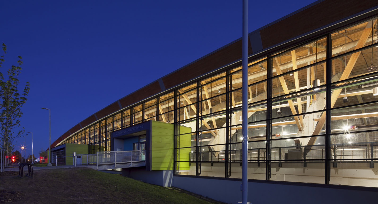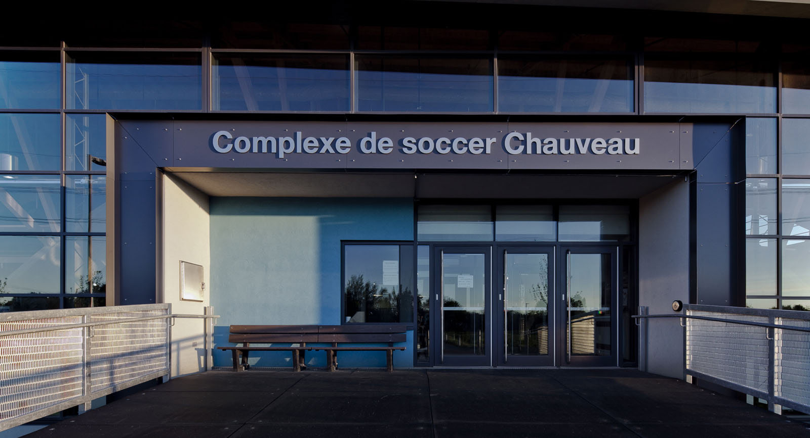 The Chauveau indoor soccer complex is a large regional sports facility commissioned by the City of Quebec. This project was the result of the city’s desire to create a noteworthy building based on the principles of sustainable development. The design sought to minimize the impact of the parking lots on the park environment and provide pedestrians with human-scale volumes housing various related activities. The roof structure is composed of a series of glulam arches with a 73 meter span. The building obtained LEED silver new construction certification.
